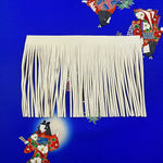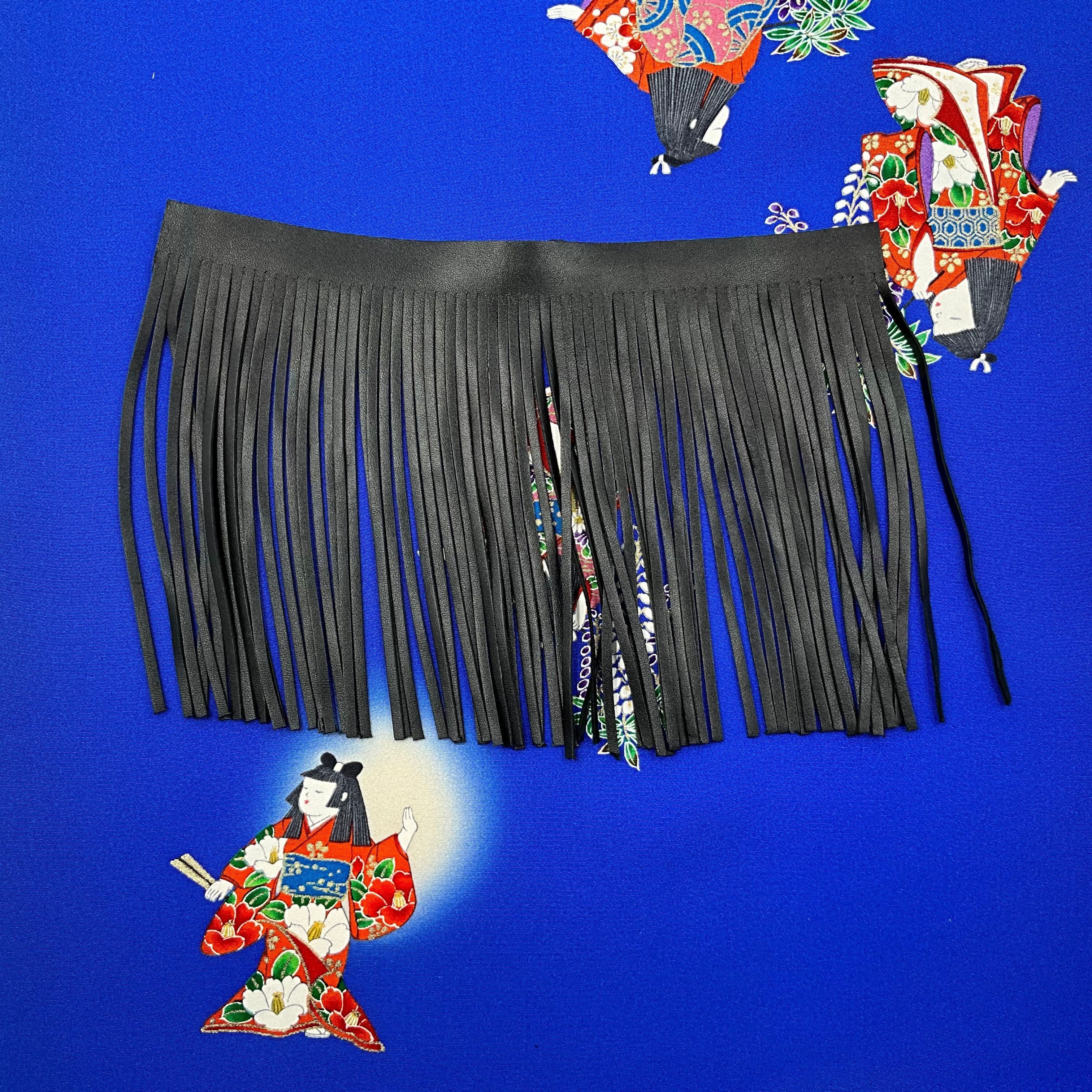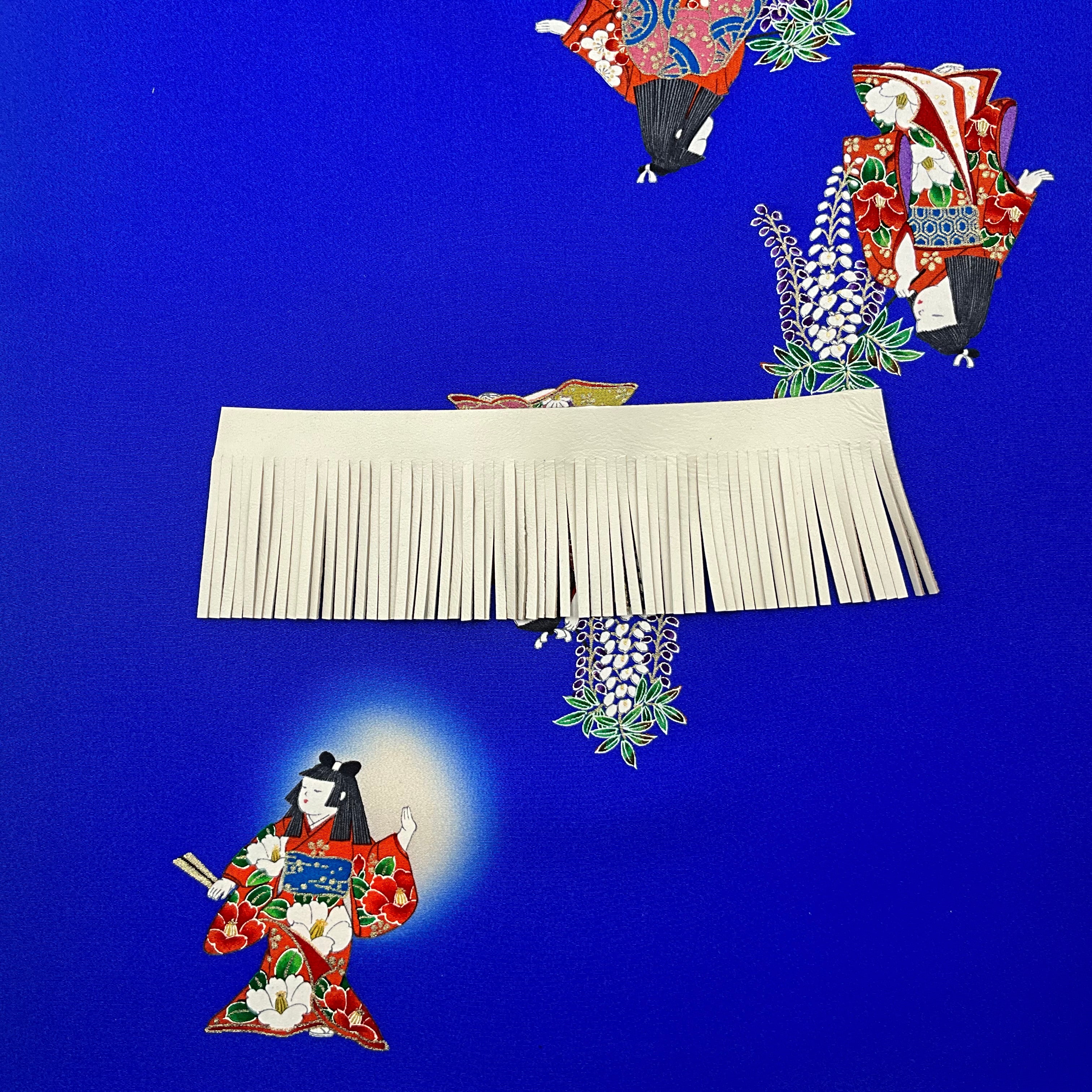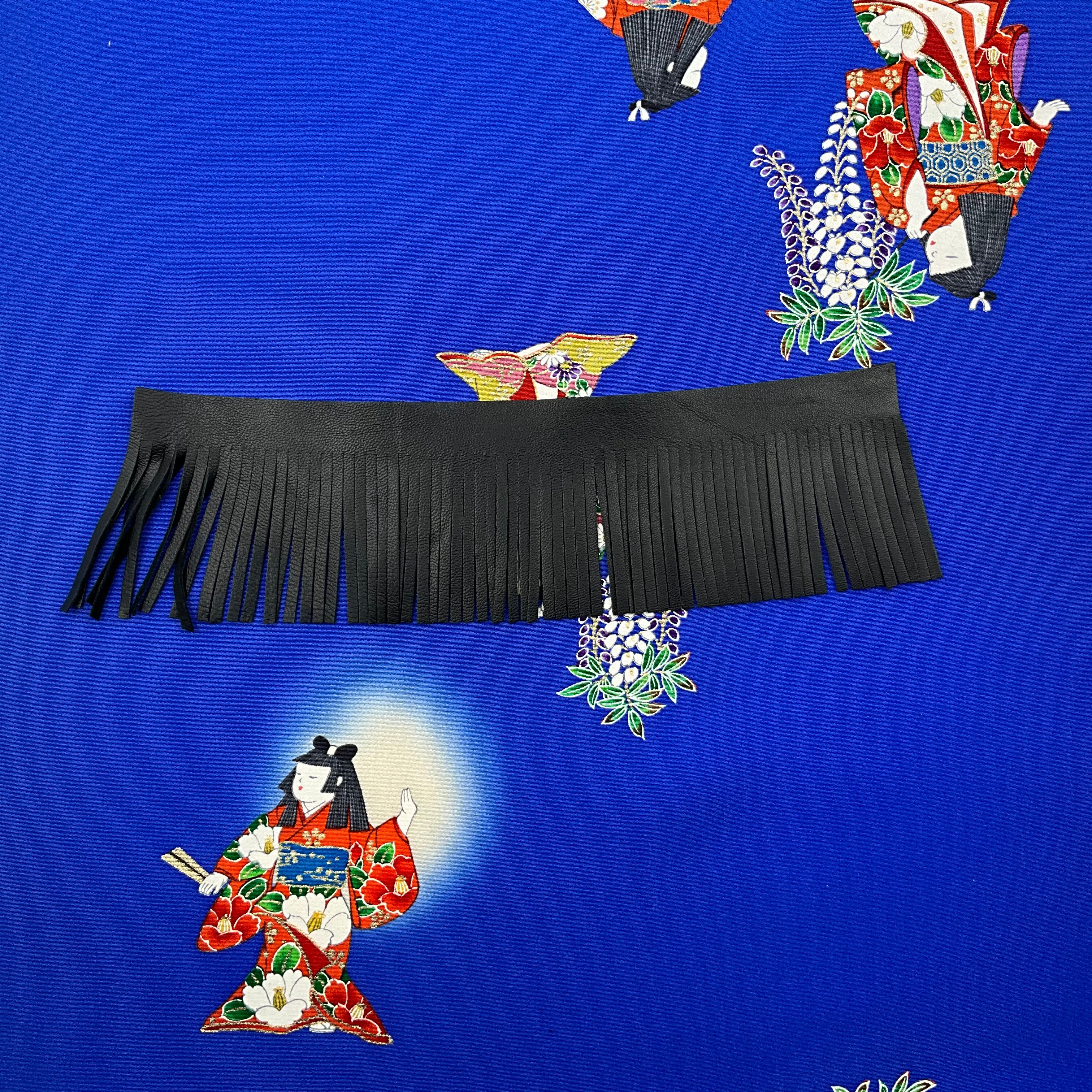 • Composition: Unused vintage 100% silk from Japan. Genuine lambskin leather fringe