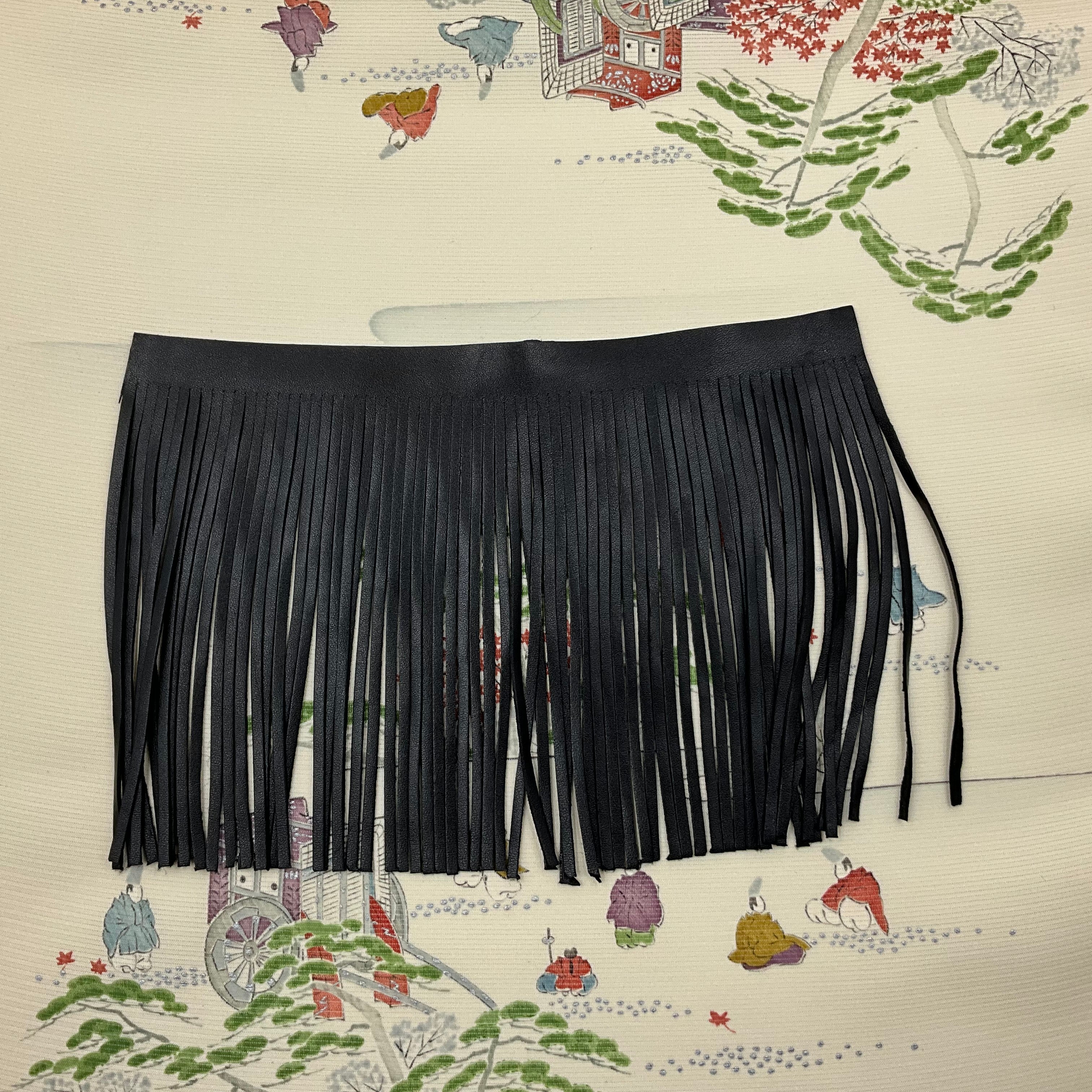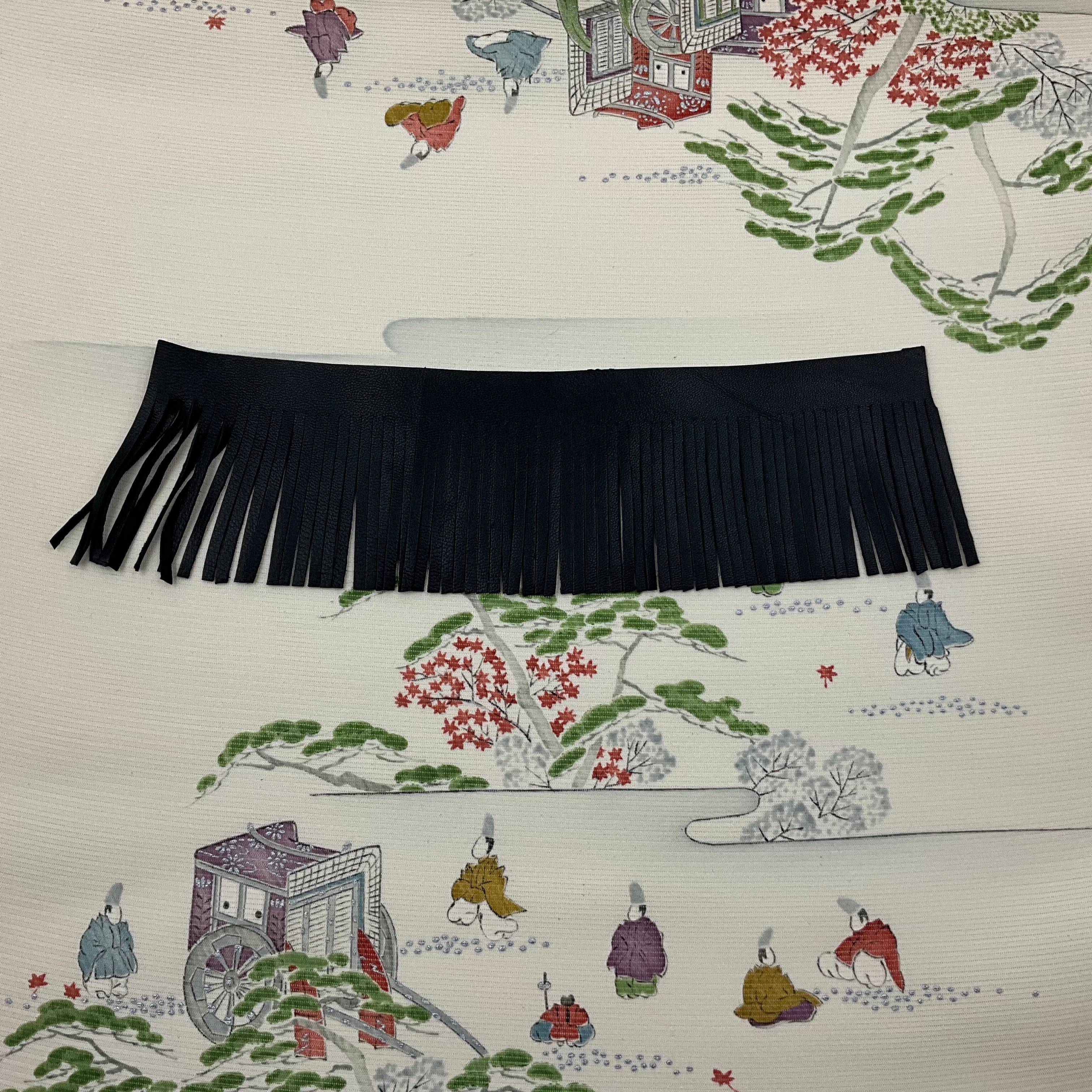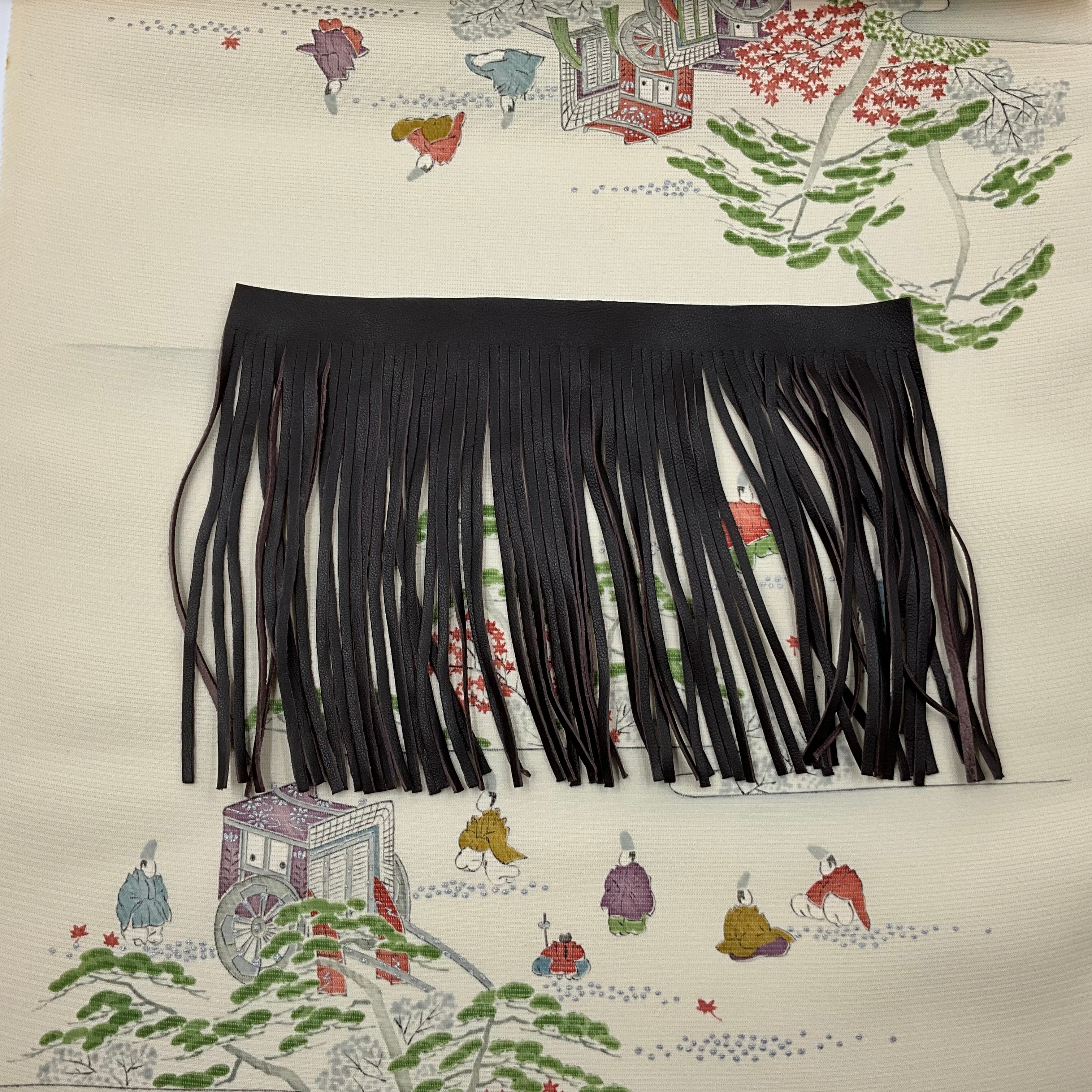 • Composition: Unused vintage 100% silk from Japan. Genuine lambskin leather fringe