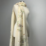 Custom Cream Silk Scarf with Noble People Scenery - Choice of Length and Leather Fringe