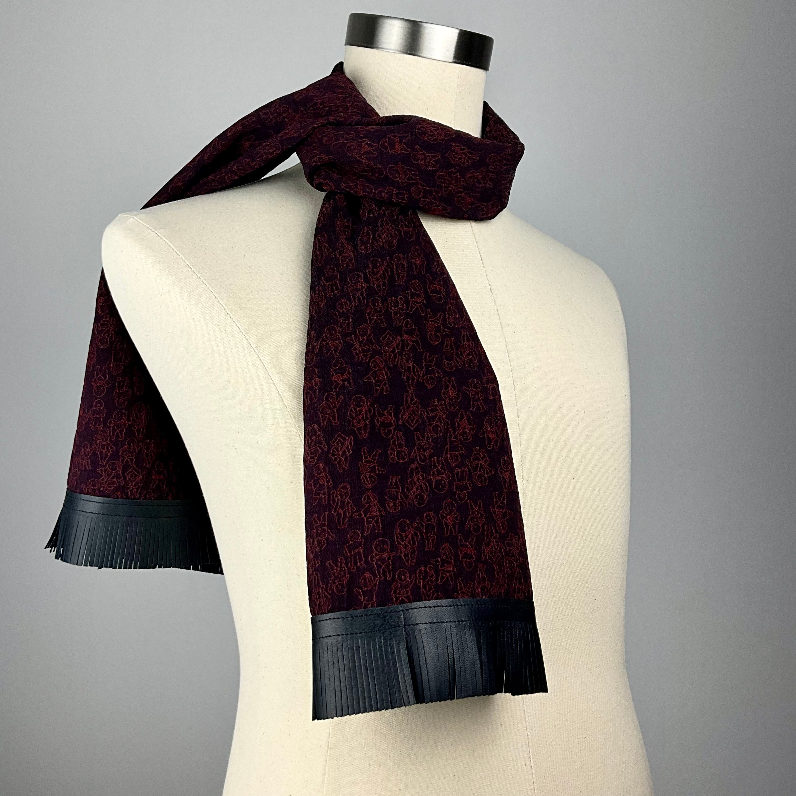 Karako (唐子) - Silk Scarf with Black Leather Fringe
