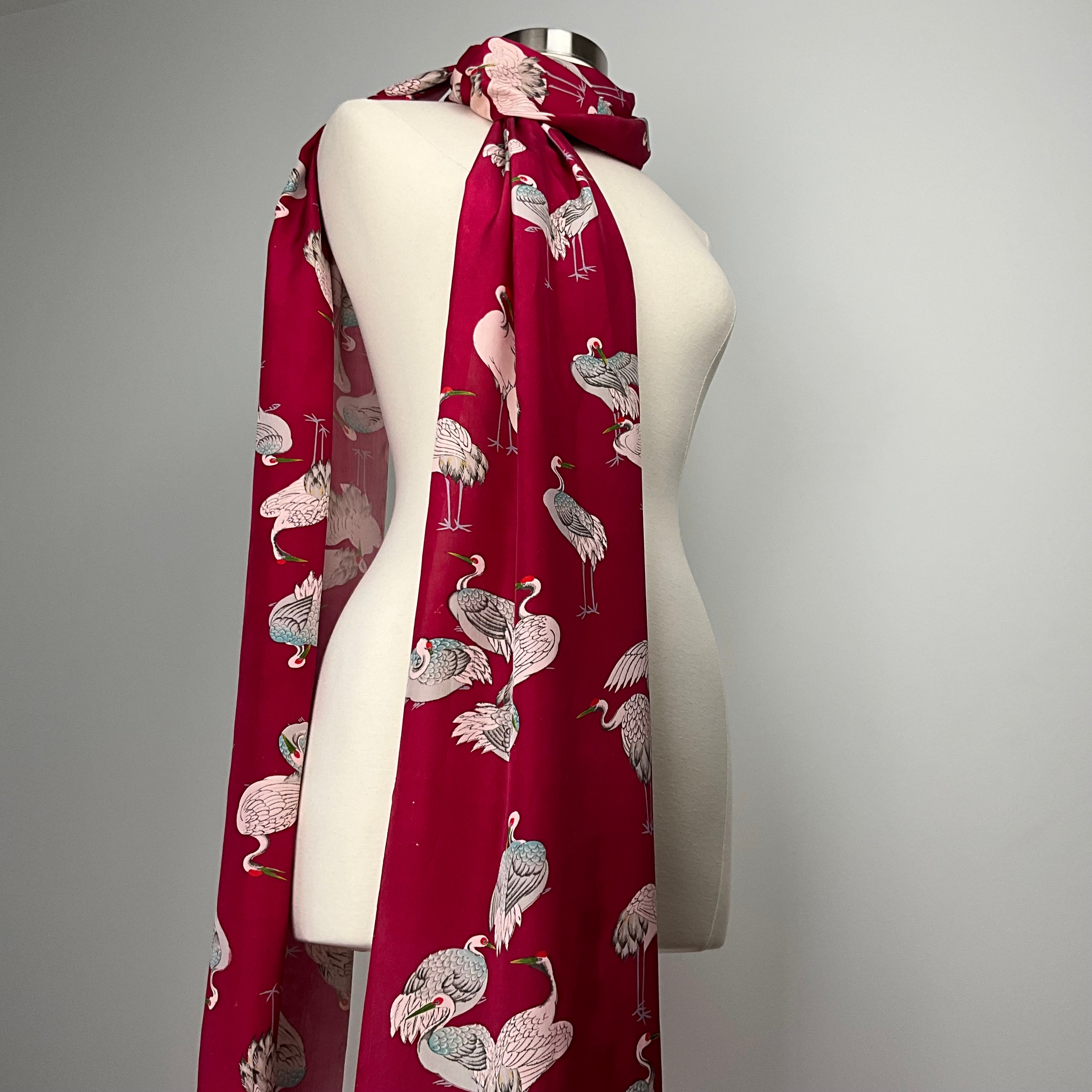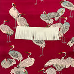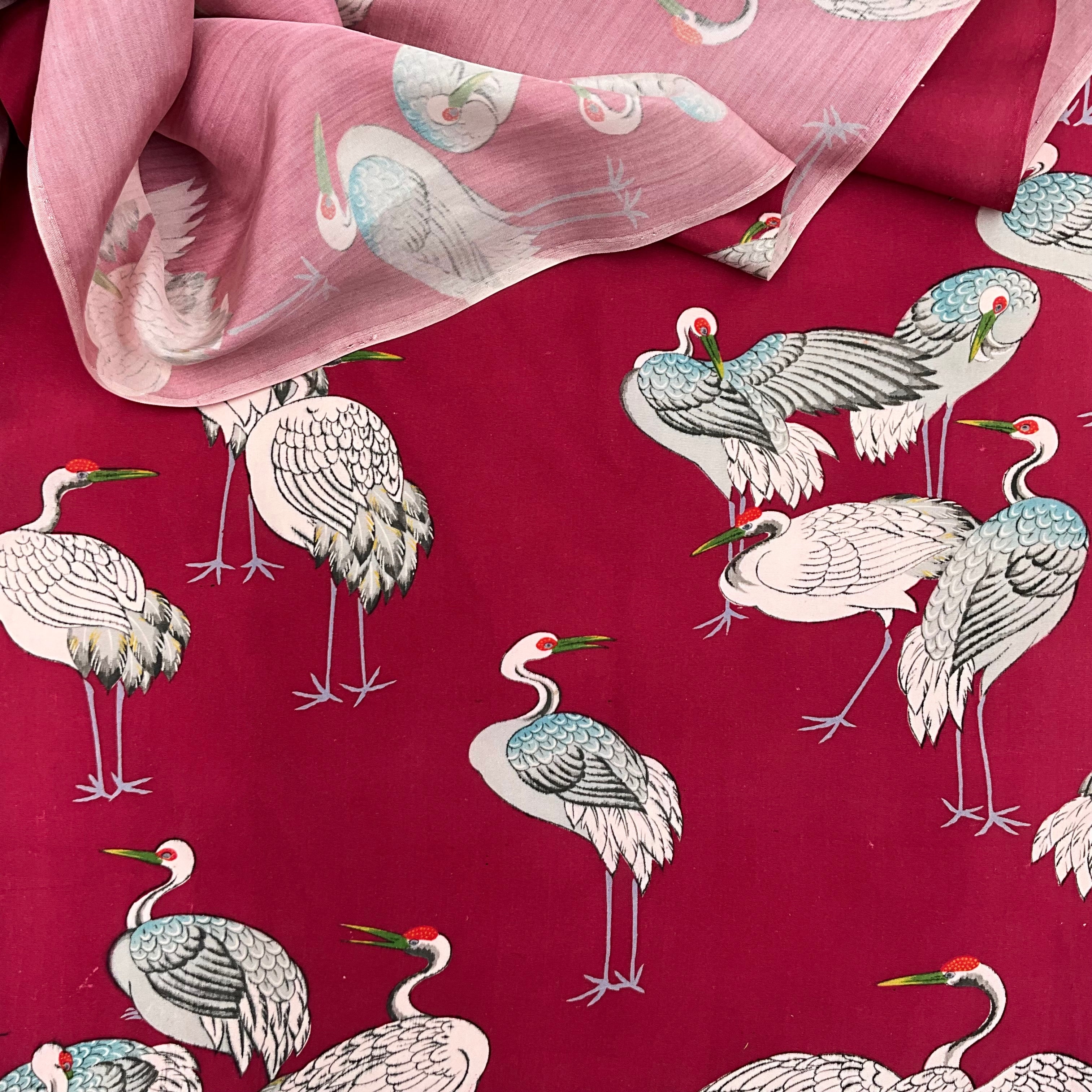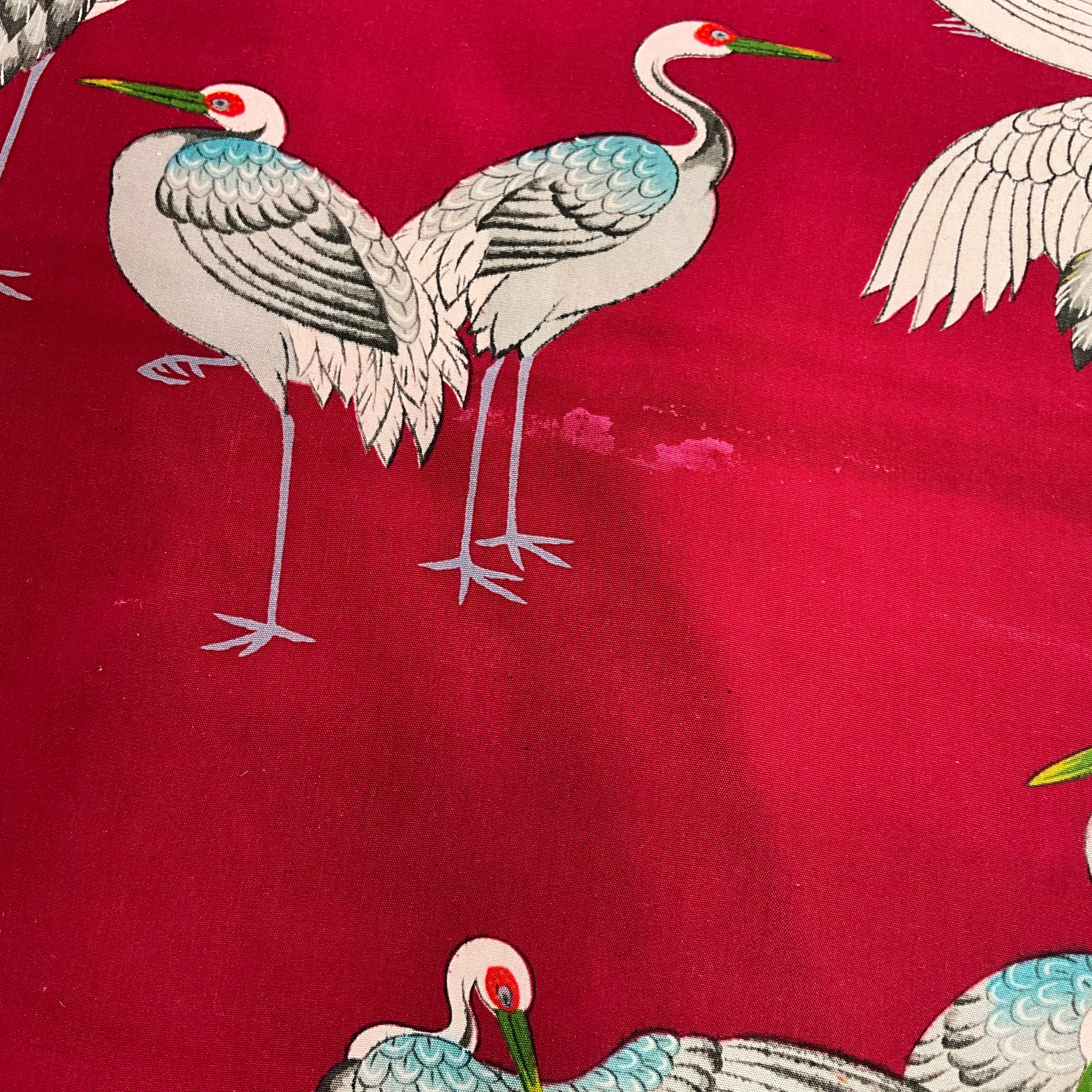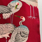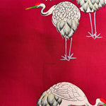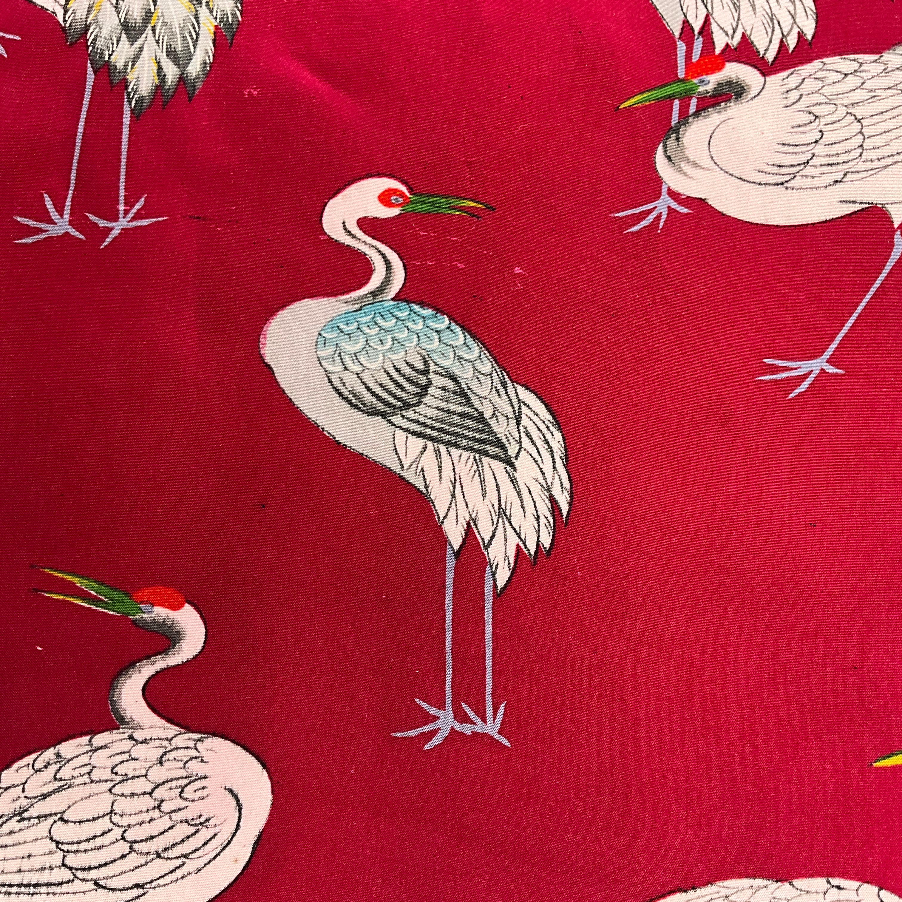 • Textile: Pre 1930's vintage Habutai silk originally made for the lining of a Haori jacket. Print of Japanese cranes and herons on a magenta base.