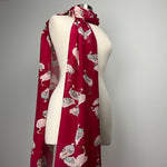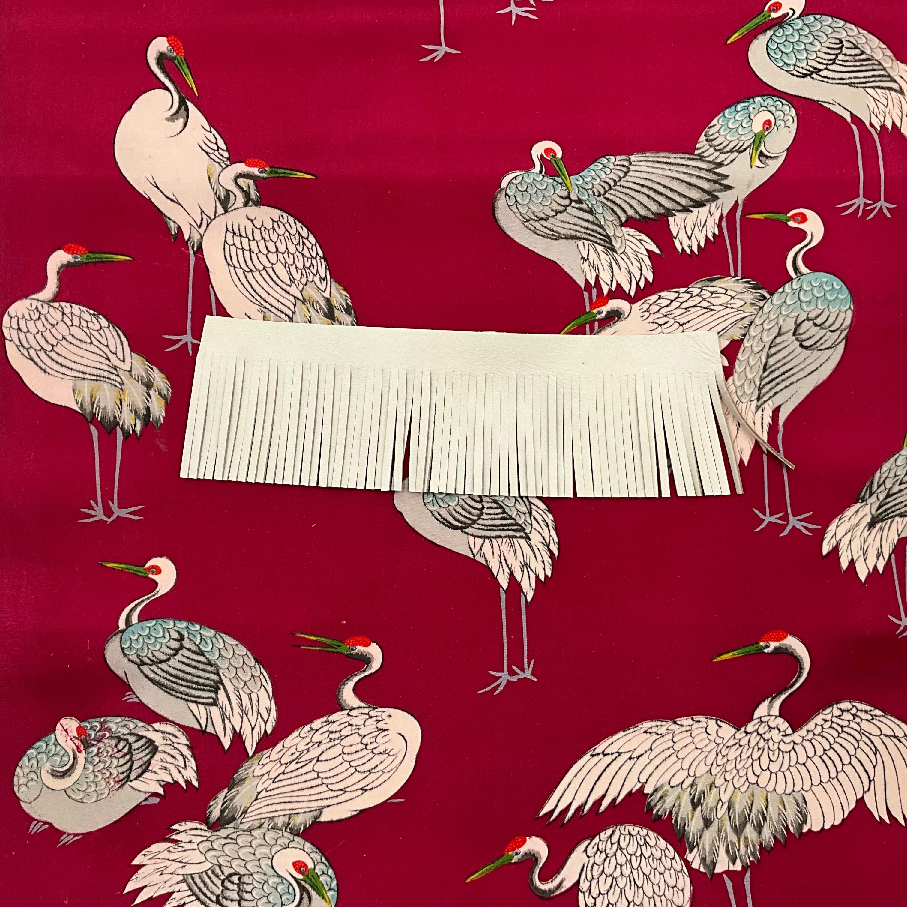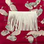 Custom Crane and Heron Silk Scarf - Choice of Length and Leather Fringe