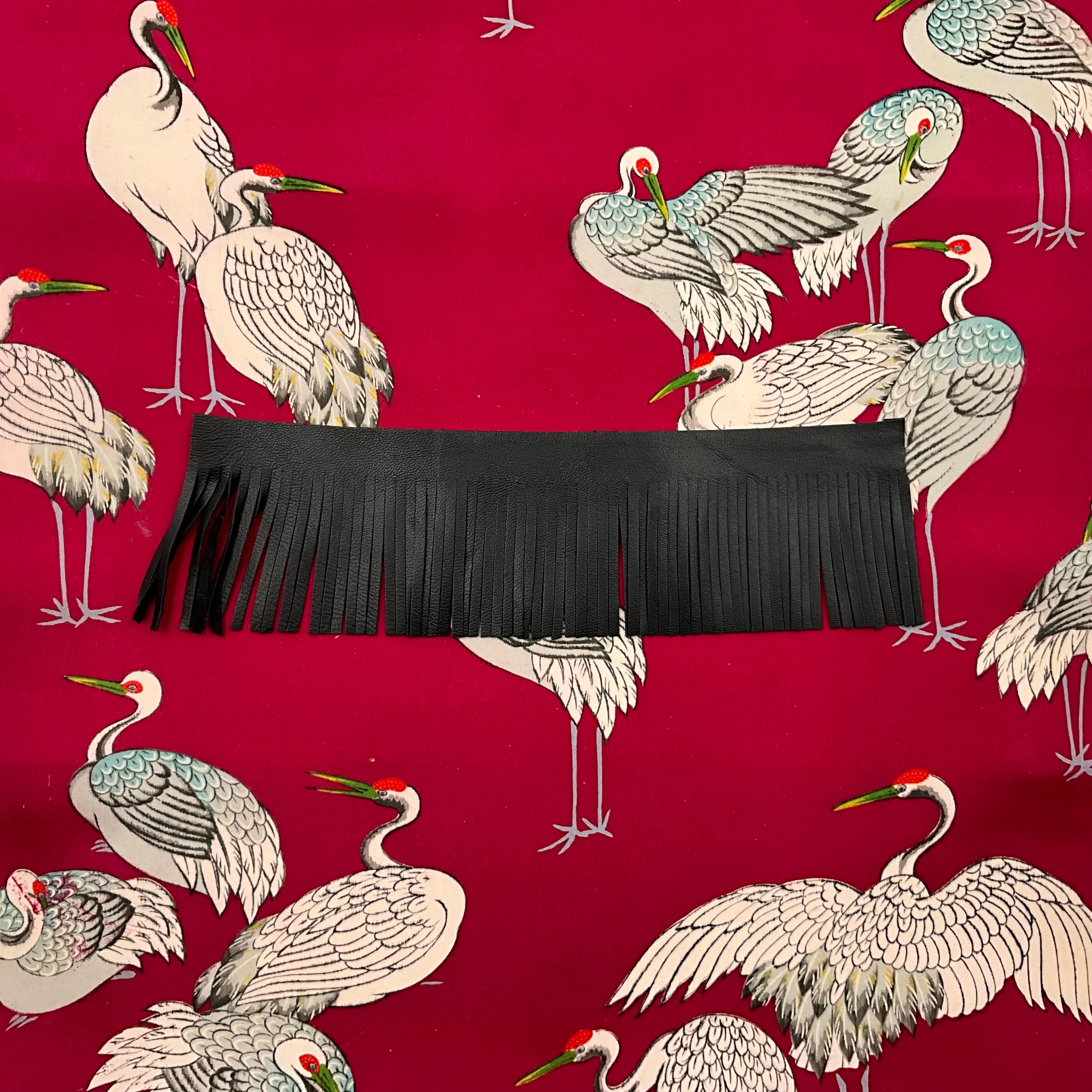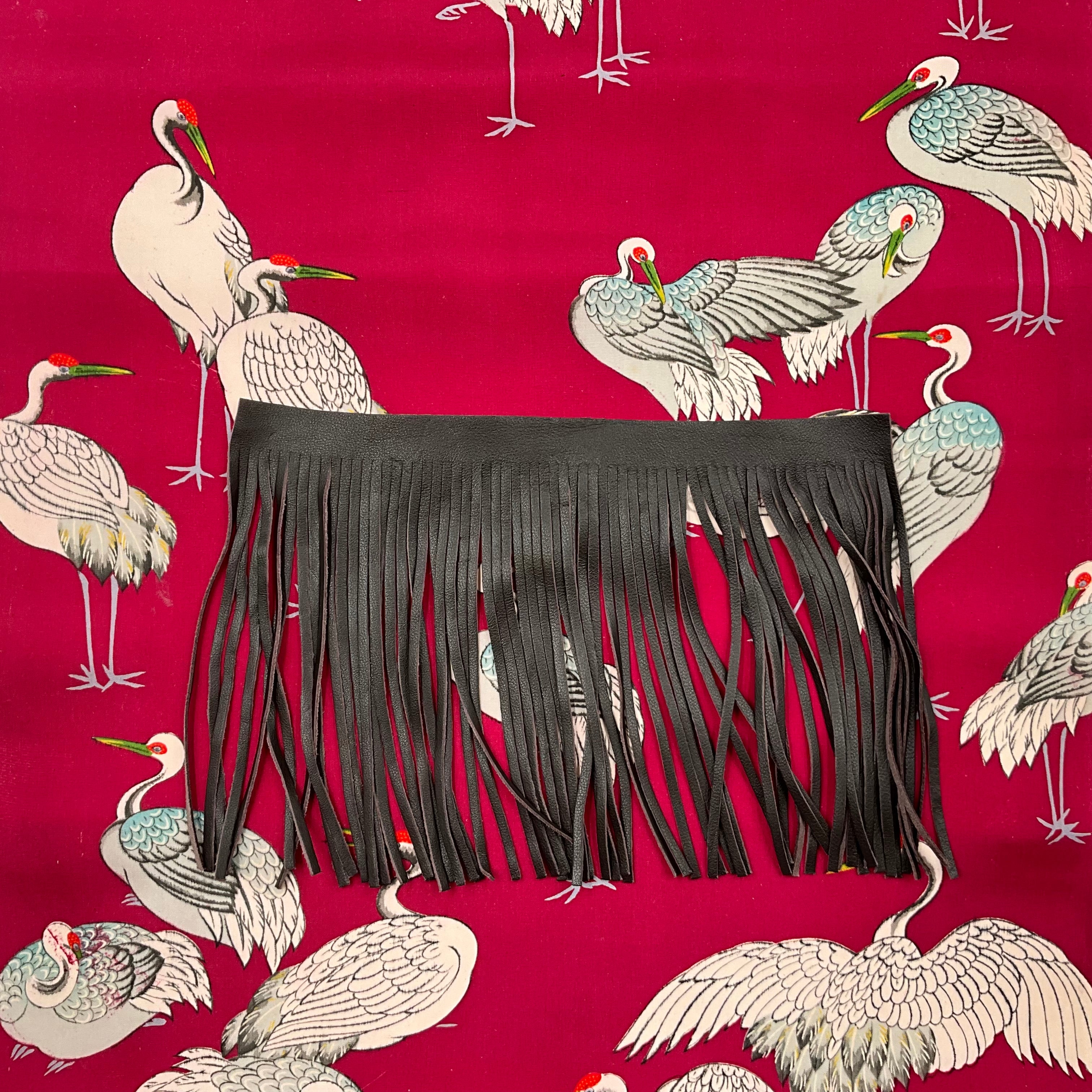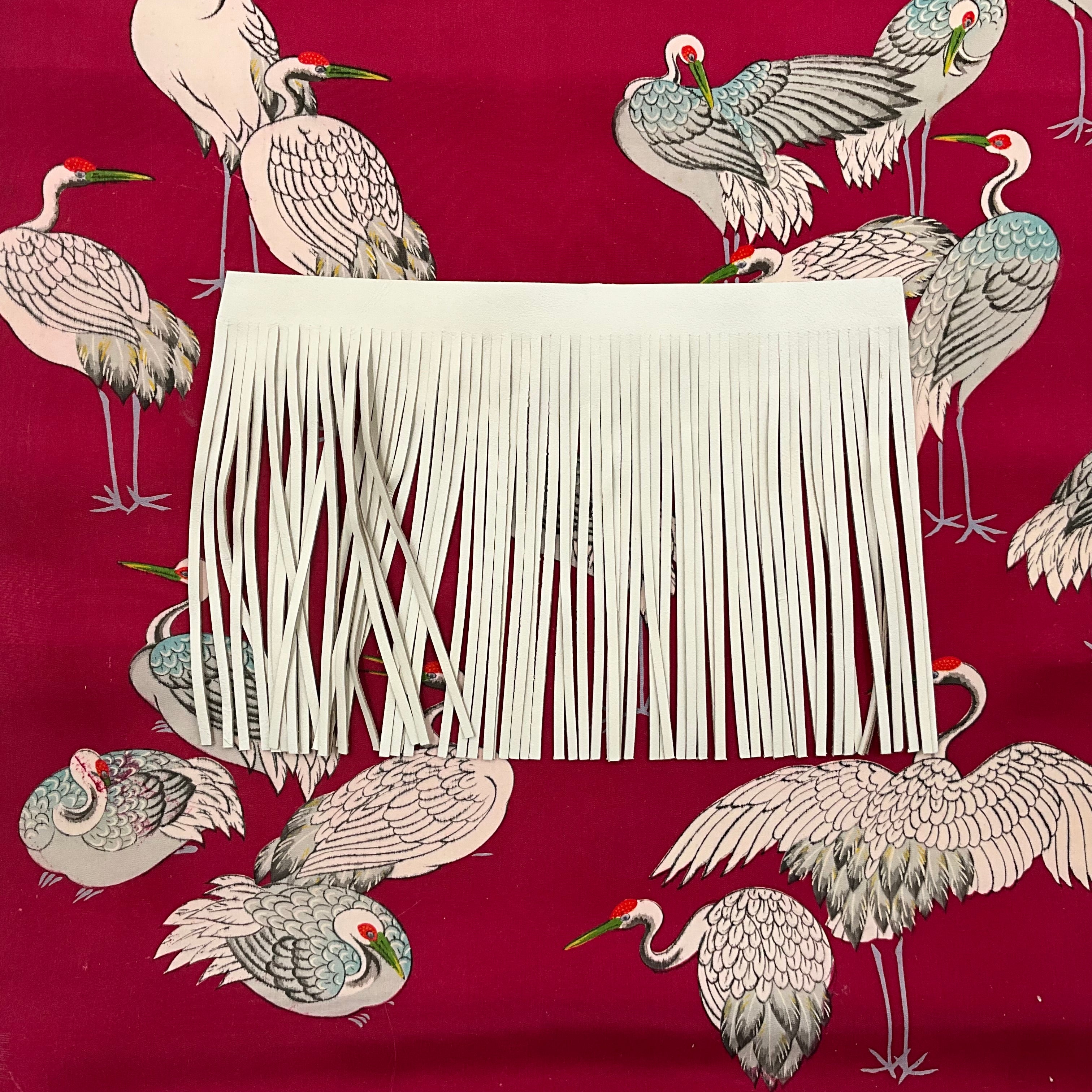 • Composition: Unused vintage 100% silk from Japan. Genuine lambskin leather fringe