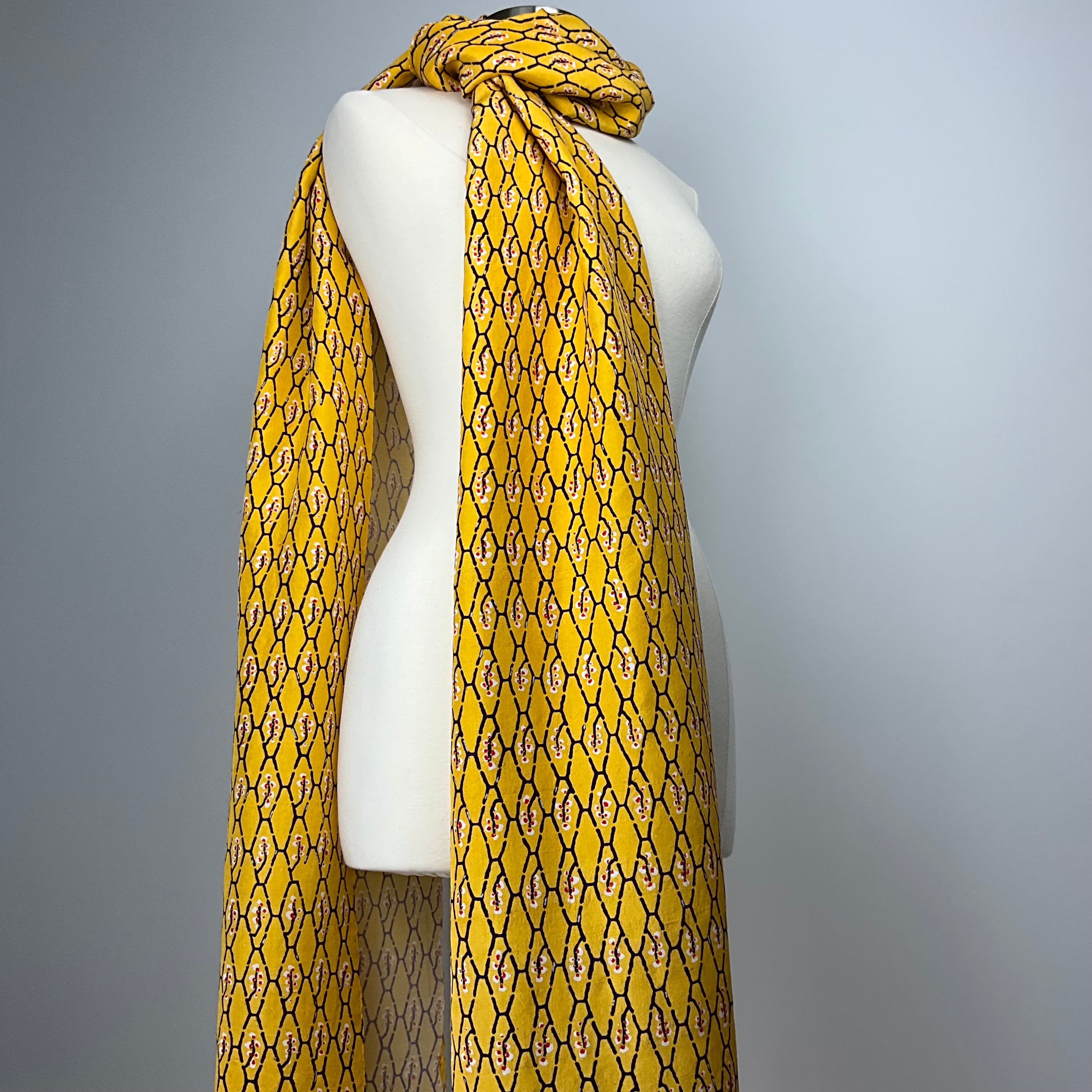 Custom Silk Scarf Ume Bud on Abstract Net -Choice of Length and Leather Fringe
