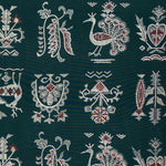 Vintage Silk Komon Kimono Green With Peacock, Deer, and Flower Pattern
