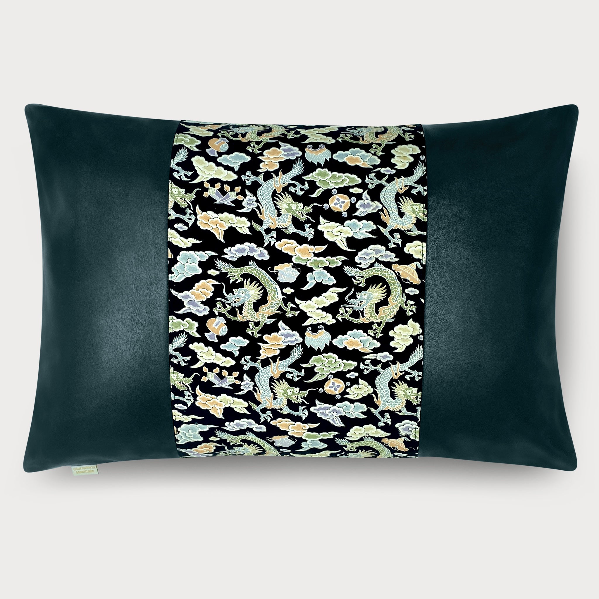 Dragons and 'Takara-Zukushi' Lumbar Throw Pillow - Choice of Leather Colors