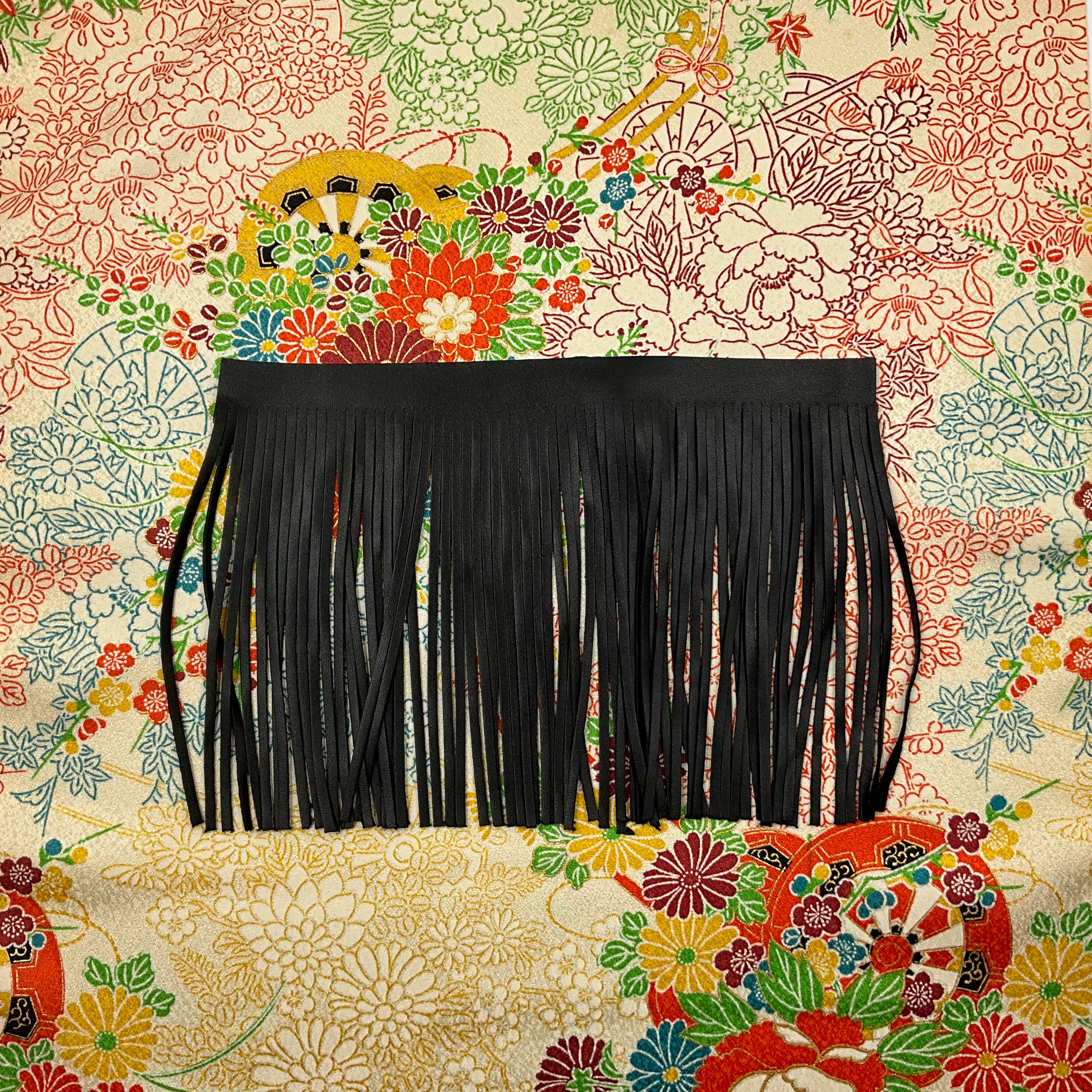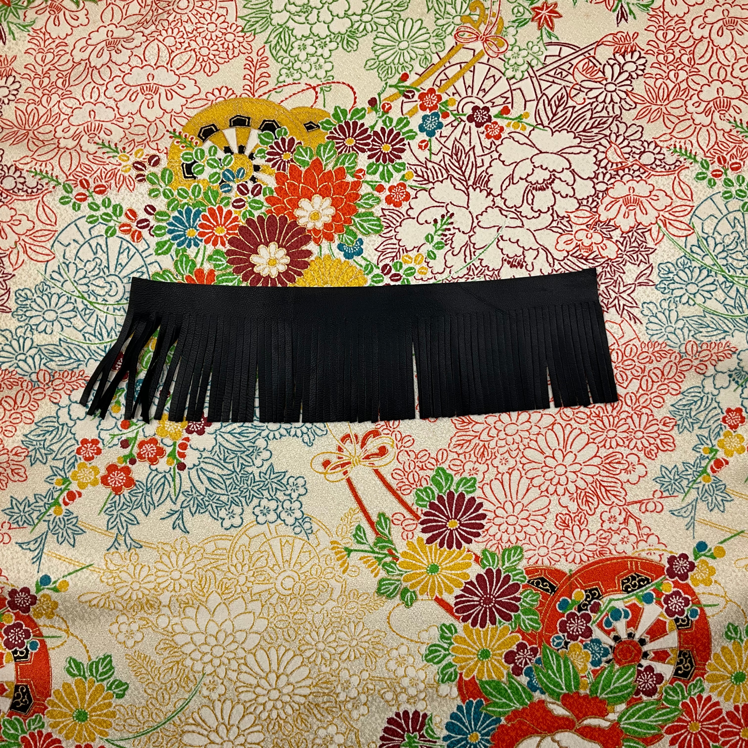 • Composition: Unused vintage 100% silk from Japan. Genuine lambskin leather fringe