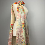 Custom Silk Scarf Colorful Flower Cart 花車 Pattern - Choice of Length and Leather Fringe