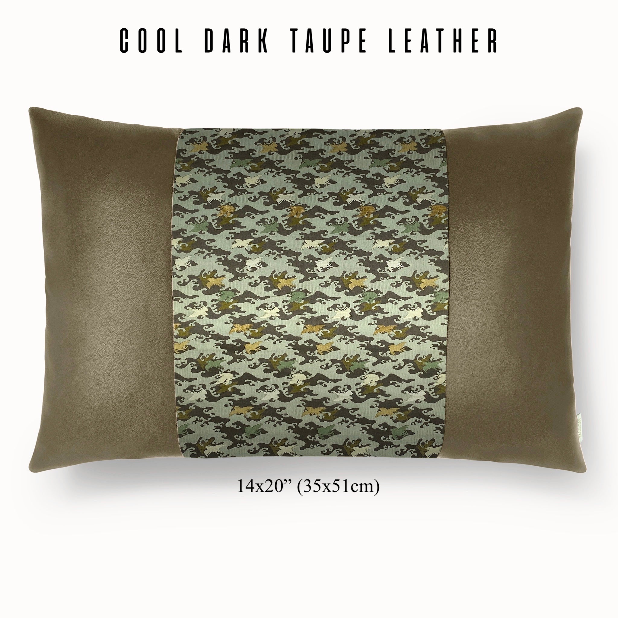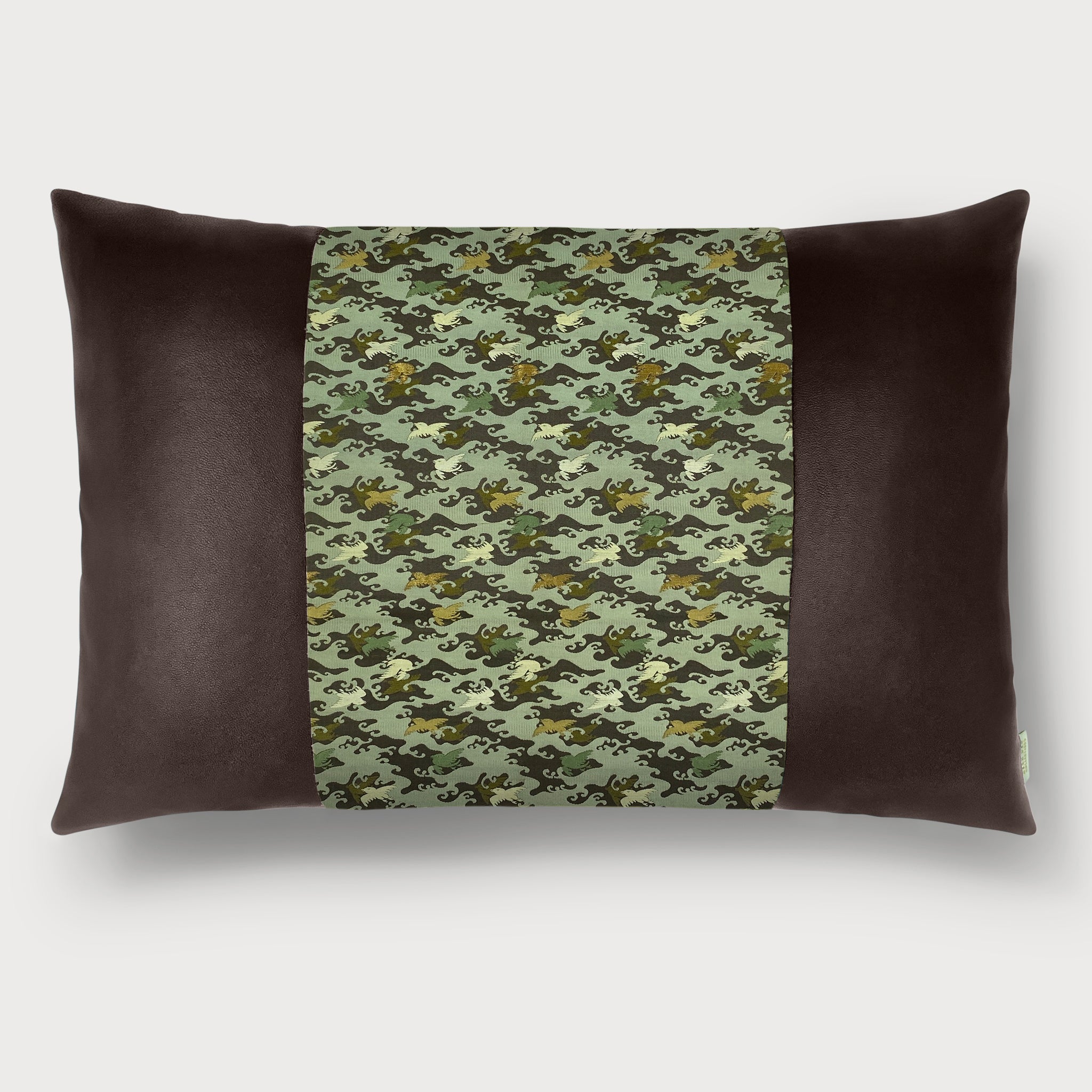 古典明治时代(1868-1912)日本丝绸,麻雀、云朵和深巧克力色皮革:查看更多皮革颜色和枕头尺寸!