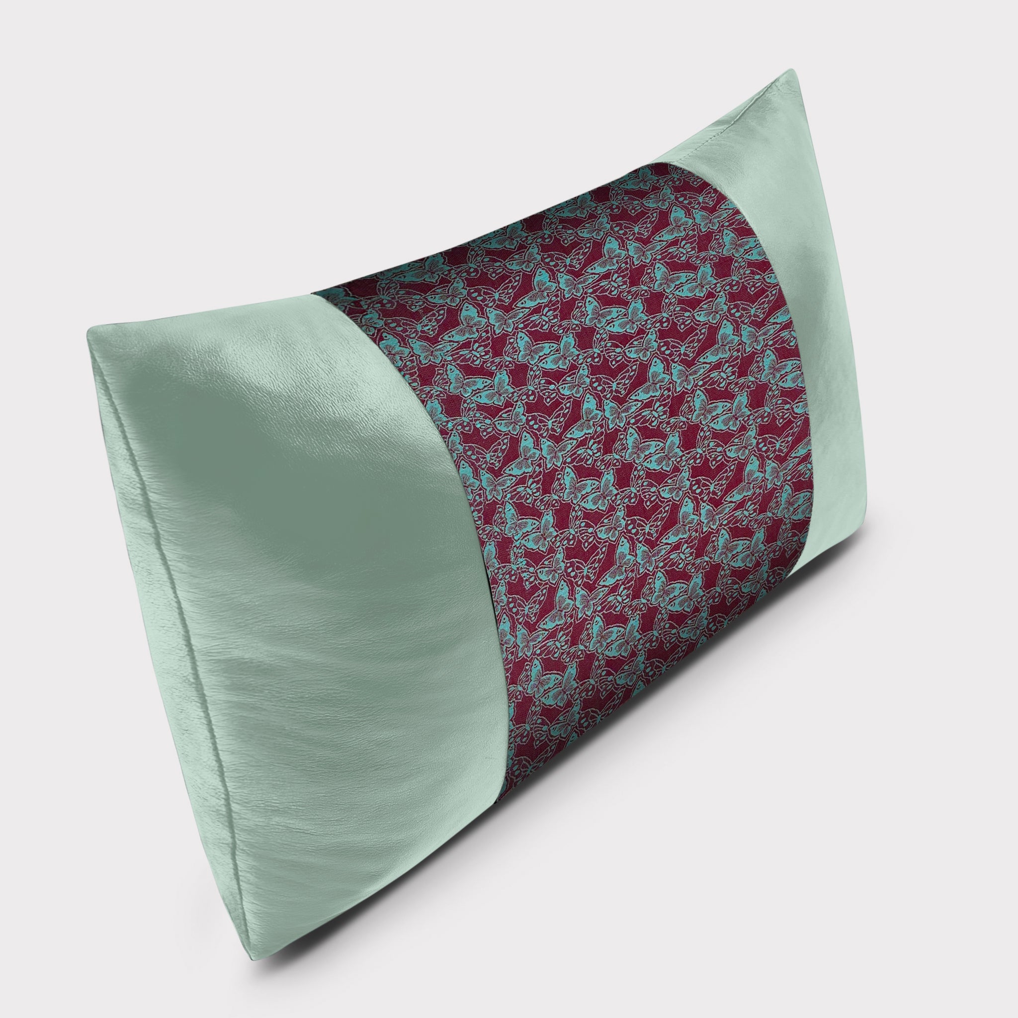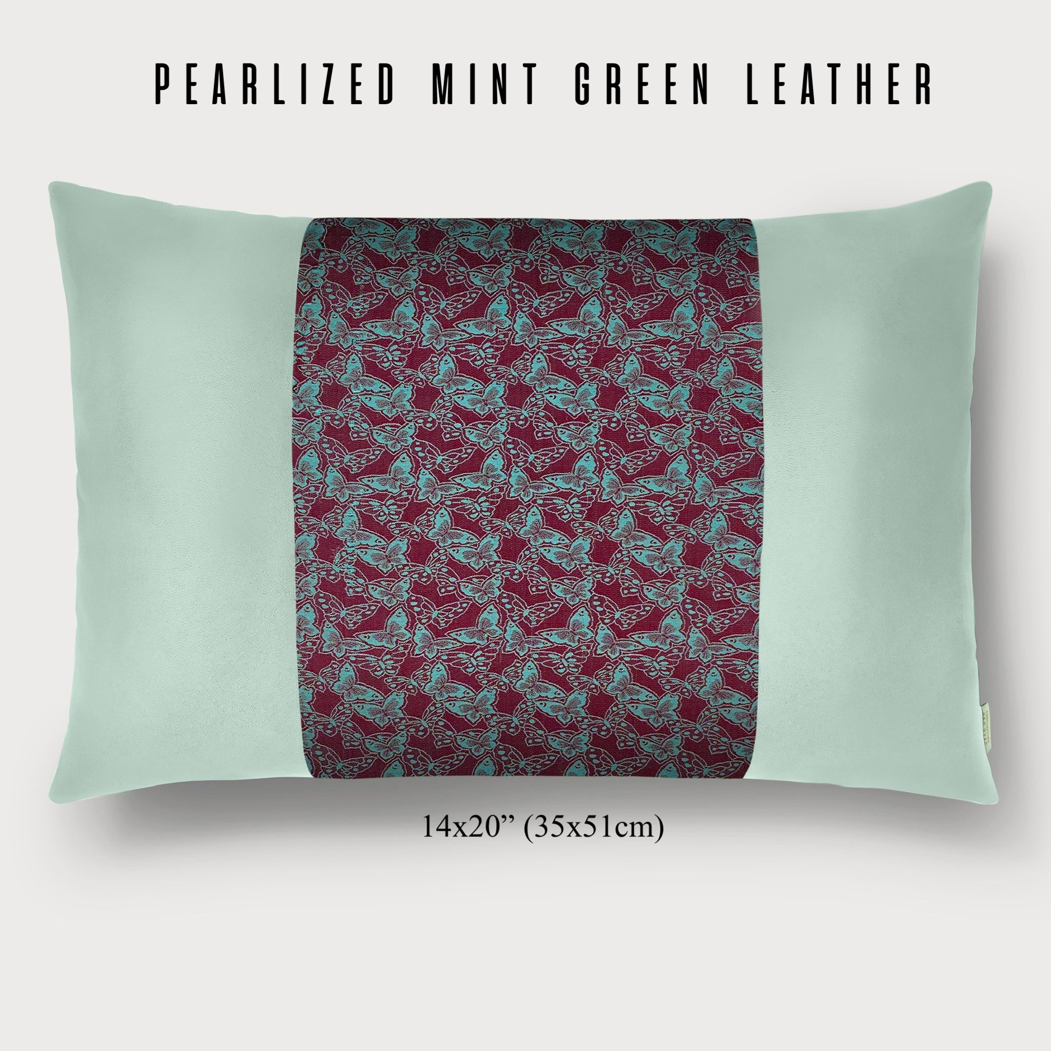 蝴蝶复古日本丝绸配珠光薄荷皮革-查看更多皮革颜色和枕头尺寸!