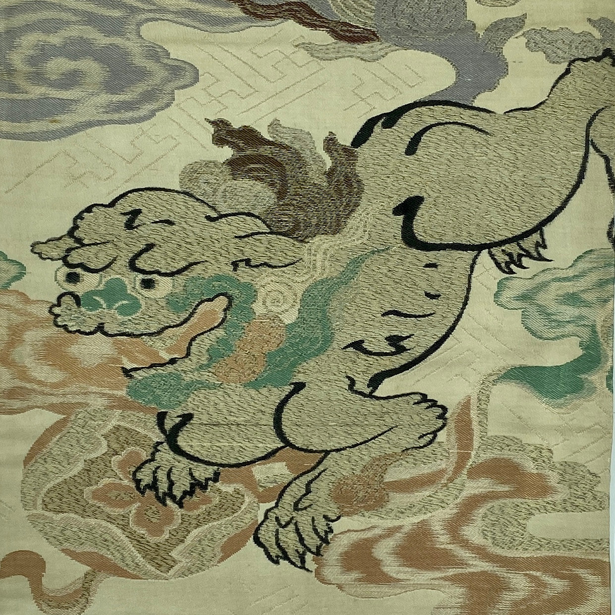 • 日本纺织:大正时代(1912-1926)或昭和初期(1926-1989)的带子丝,为了使其经久耐用,我们用底料进行了稳定。它来自日本最正式的带子-丸带子。