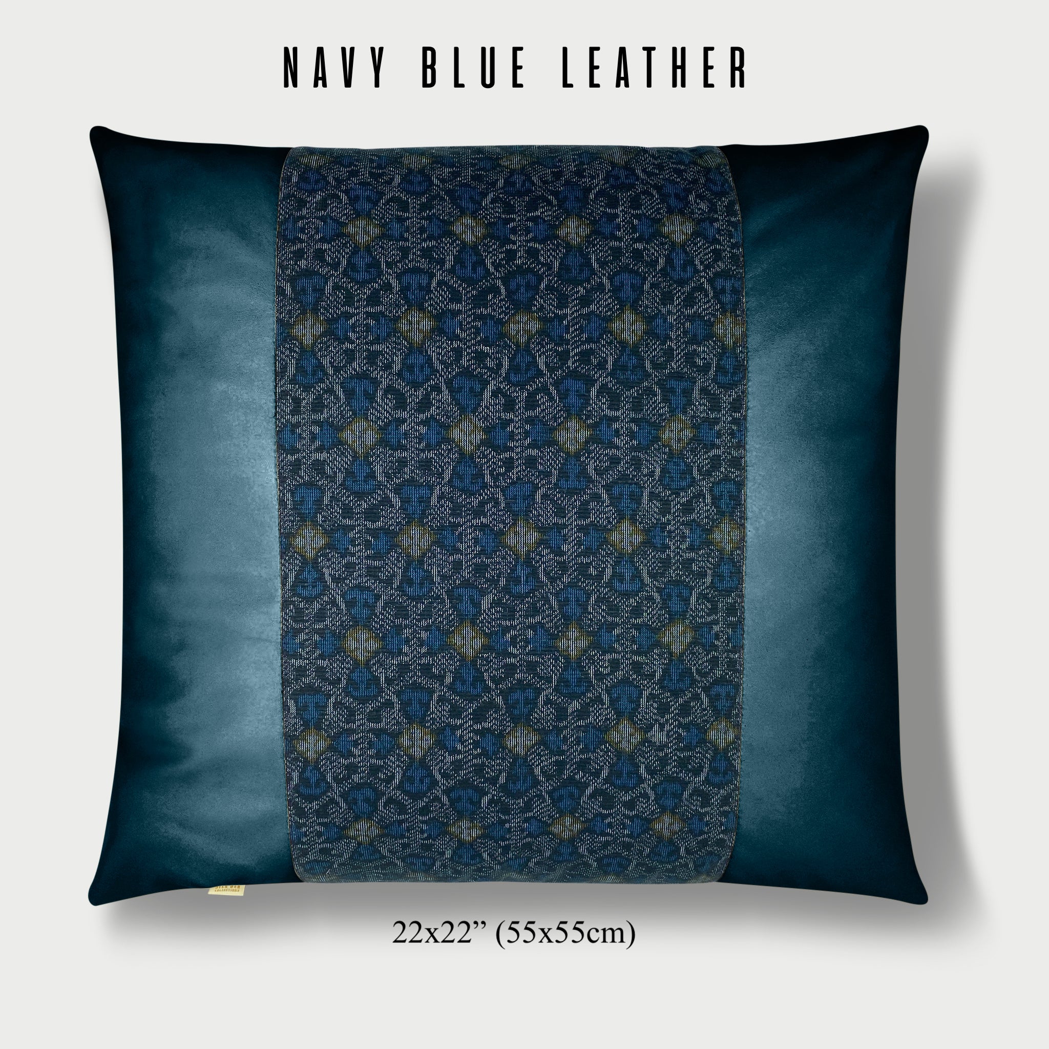抽象的航海绳索和锚复古的日本津木丝绸配深蓝色皮革:查看更多皮革颜色和枕头尺寸!